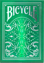 Bicycle Jacquard gets its design inspiration from complex, ornate patterns often woven into fabric resulting in beautiful displays. The Bicycle Jacquard tuck case features emerald green and silver foil details woven throughout creating a dazzling and dramatic appeal. Just as Jacquard machines revolutionized Looms with their “chain of cards” operation, this premium deck of cards has been designed and manufactured with the same sophistication and innovative technology.
