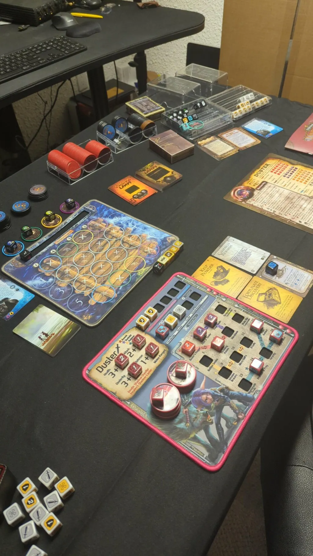 Nugget comes with her own set of 21 beautiful custom dice, an 11.5 gram chip, closeable dice holder, and a neoprene character mat.