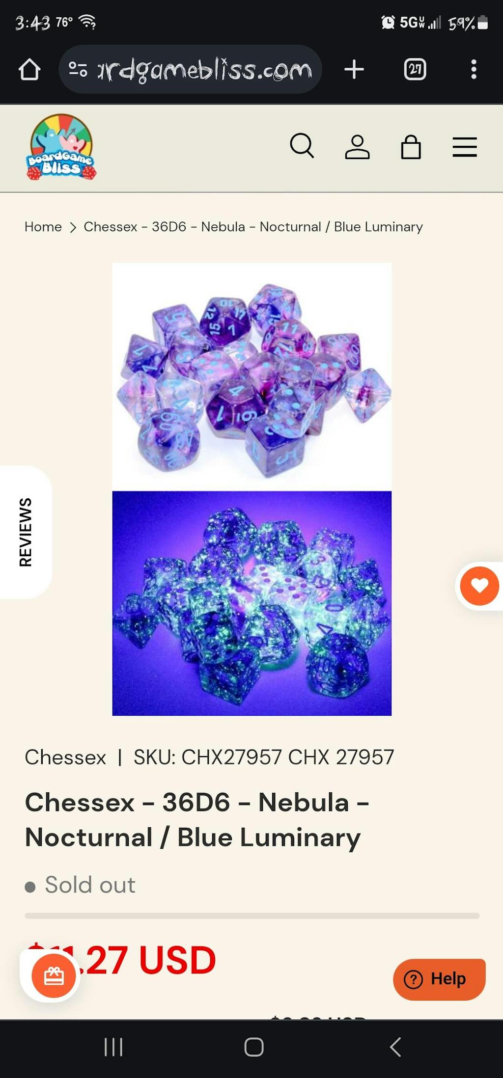 Chessex - 36D6 - Nebula - Nocturnal / Blue Luminary