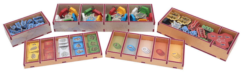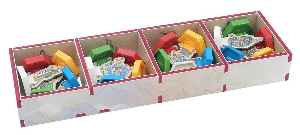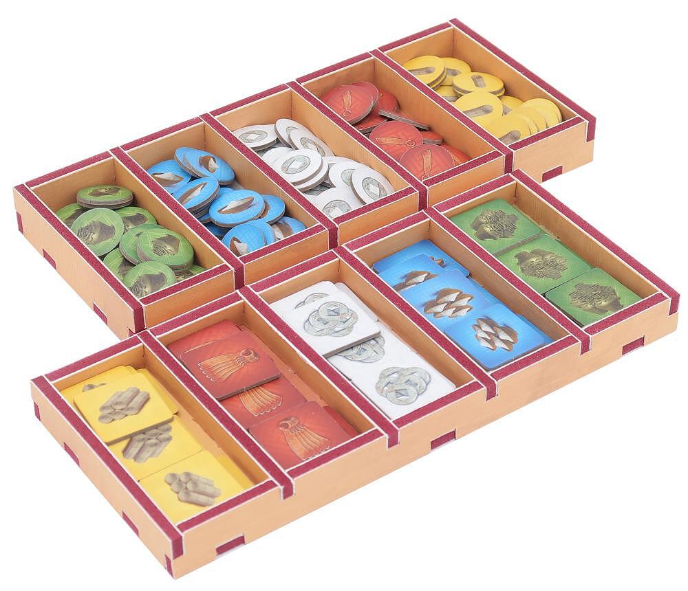 The full colour print really brings the trays to life, tying them in with the theme of the game and making it easier to see which components go where.