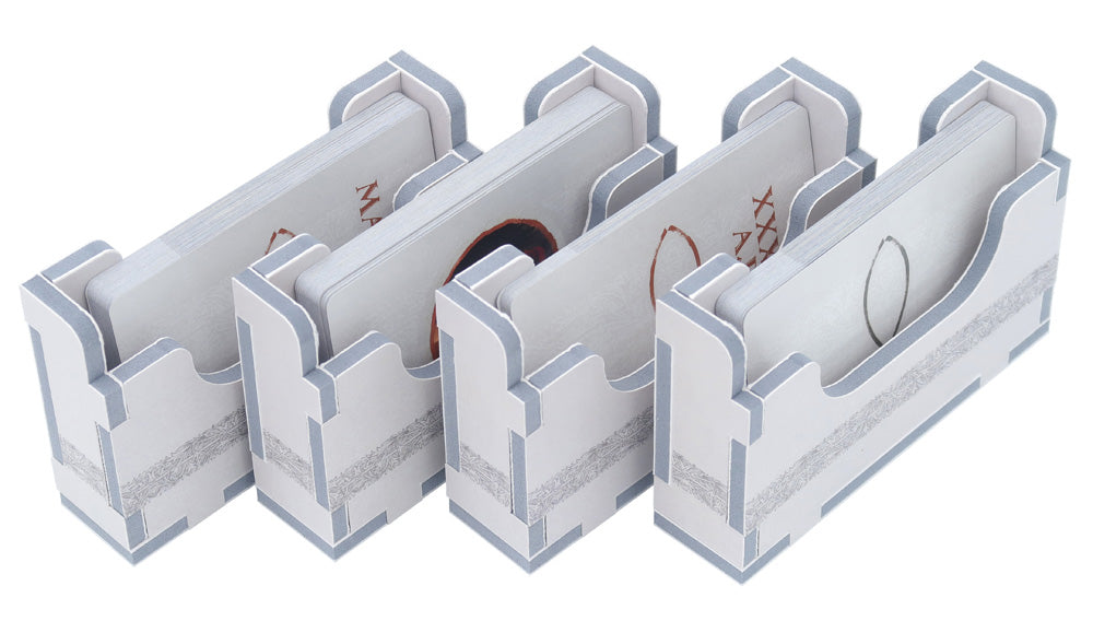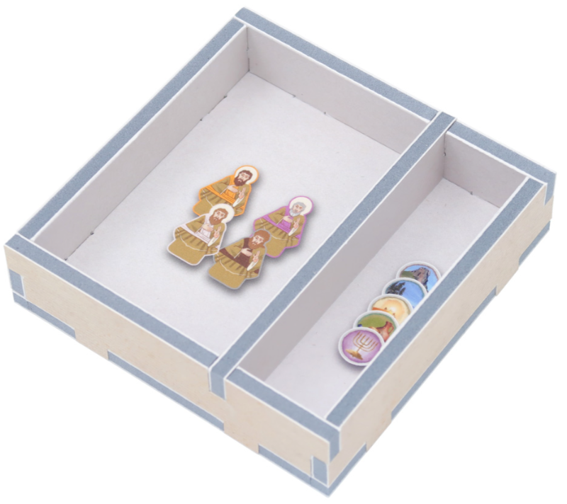 Insert compatible with Ierusalem: Anno Domini®. The design provides both efficient storage and improved game play. Many of the trays can be utilized during the game, and they greatly aid set-up and clear-away times.