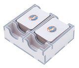 The trays are arranged in up to two layers, with card deck trays arranged around the edge of the box.