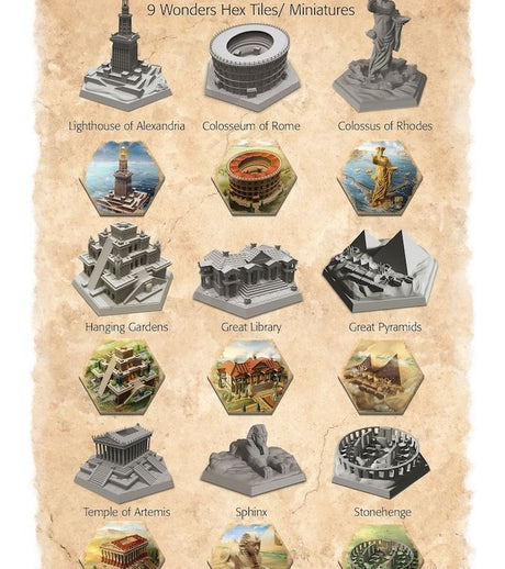 Mosaic: A Story of Civilization - 9 Wonders Hex Tiles Miniatures