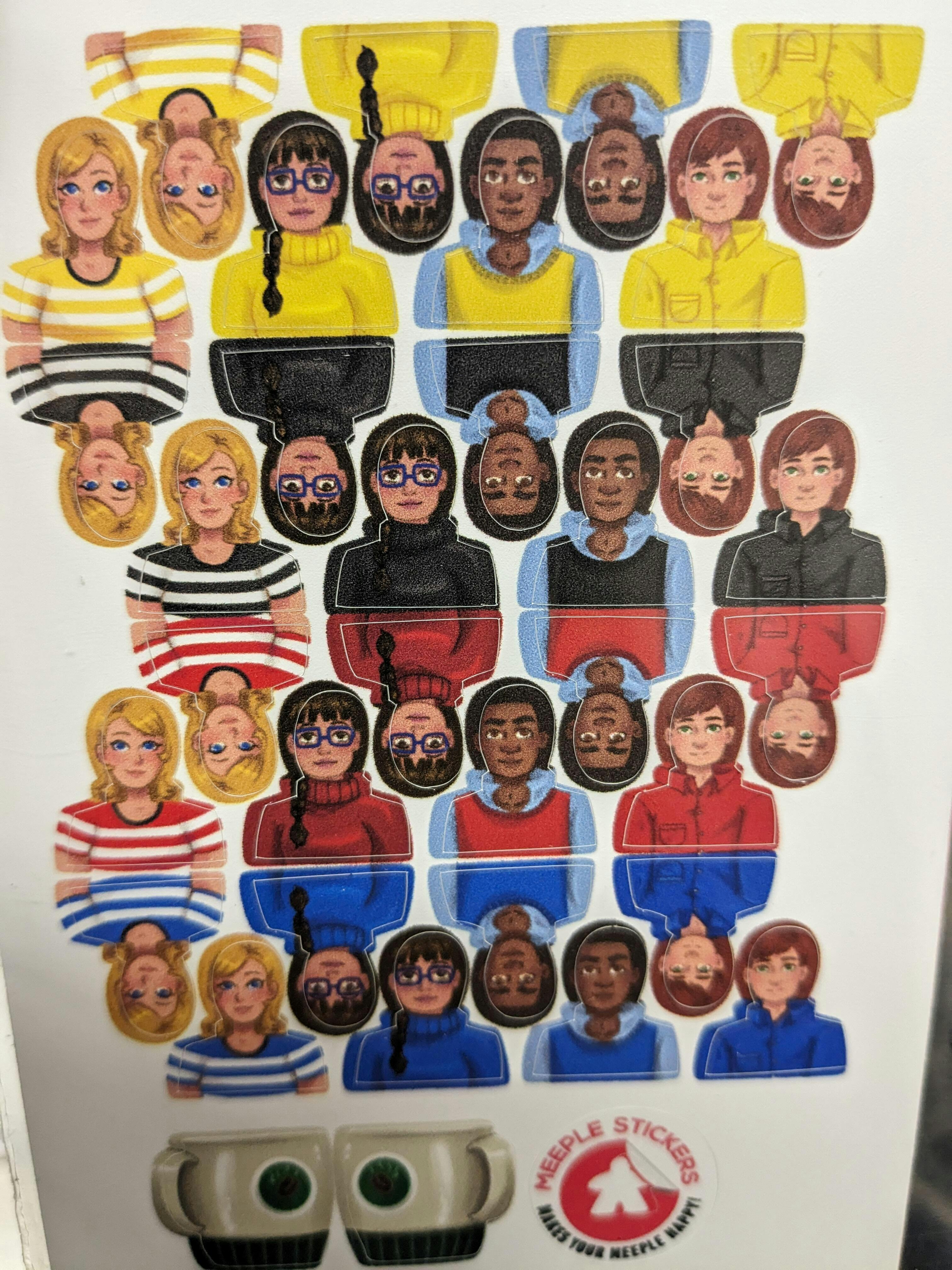 This package contains stickers only. Does NOT include wooden figures (meeples).