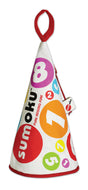 Sumoku is a crossword-style game with colored number tiles that can be played five different ways. In all Sumoku games, game play starts with the roll of a die to create a "key number" – either 3, 4 or 5. The digits in all groups of tiles placed in rows and columns must sum to a multiple of this key number. A tile is one of six colors, and a color cannot be repeated in a connected set of tiles.