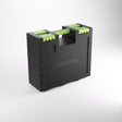 The Game Castle is a perfect storage solution for 6 Commander Decks** (6x 100 double-sleeved cards), tokens, dice, movement/range tools, and many other gaming accessories! One side of the box houses six removable card holders for 600 double-sleeved cards in Thick Inner Sleeves or 800 board-game-sleeved cards. The other side holds 19 removable trays in 5 different sizes, including an extra-long tray to store movement/range tools, two trays in Mini-American card size, and two in Standard Card Game size. The trays can be swapped with those from the Gamegenic Token Silo and the Token Silo Cards Add-on, offering many different size and color combinations. The innovative clip mechanism ensures precise and secure closure.