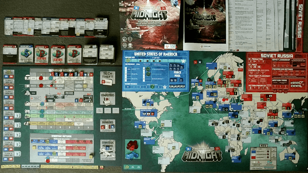 2 Minutes to Midnight is a fresh design exploring the cold war in 5-year turns starting in 1946 and running for 9 turns to 1990.
