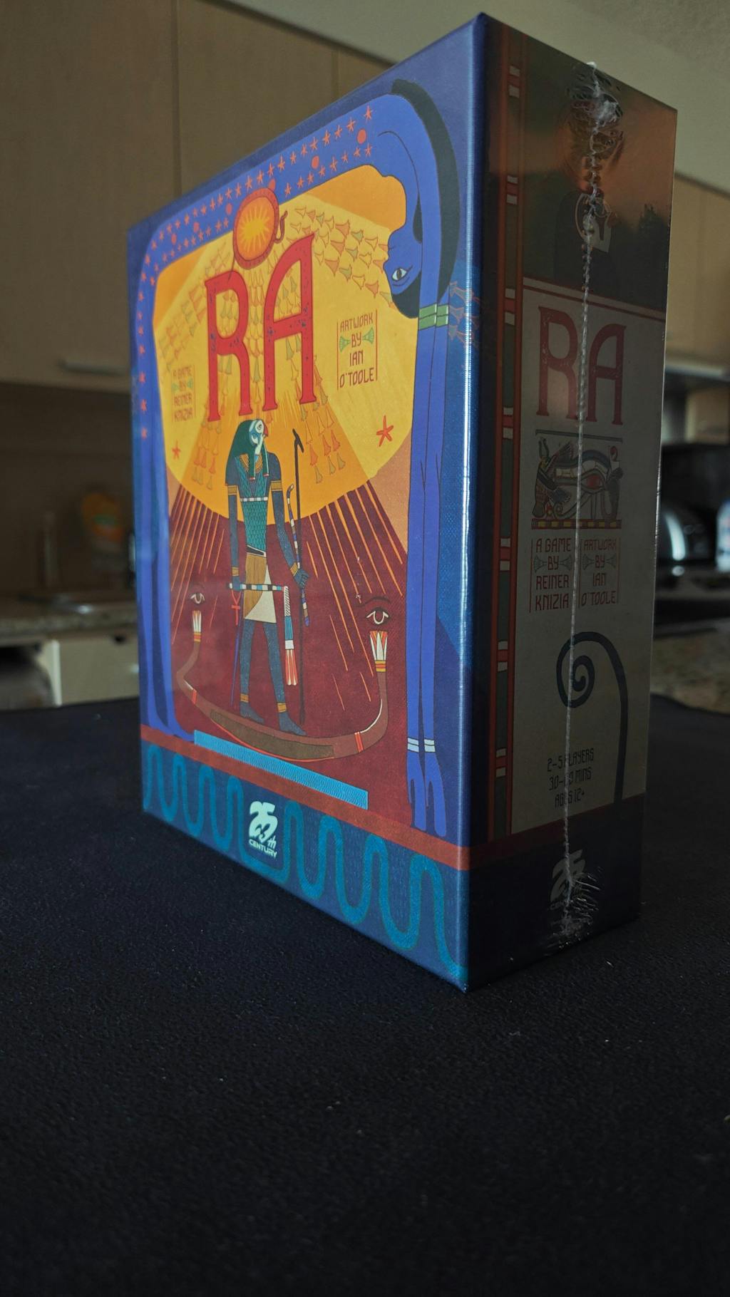 The players seek to expand their power and fame and there are many ways to accomplish this: Influencing Pharaohs, Building monuments, Farming on the Nile, Paying homage to the Gods, Advancing the technology and culture of the people. Ra is an auction and set collecting game where players may choose to take risks for great rewards or... And all this is for the glory of the Sun God Ra!