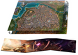 A fold-out high-quality poster map (A1-size) where one side features the world map and the other side features the detailed Imperial Capital, the most important city in the world, as well as a GM screen with world-class inspiring artwork.
