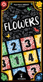 FLOWERS consists of a 108-card deck, with cards coming in four colors and values 1-4. Each player starts with a random card in their play area, and the remaining cards are divided into stacks, with one being face down and the others having the top card face up.