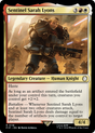 Battalion — Whenever Sentinel Sarah Lyons and at least two other creatures attack, Sentinel Sarah Lyons deals damage equal the number of artifacts you control to target player.