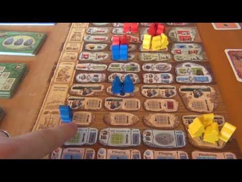 Using the central board in A Feast for Odin, players have to hunt, gather basic materials, refine those materials, develop their production-buildings, build/buy ships, and raid settlements.