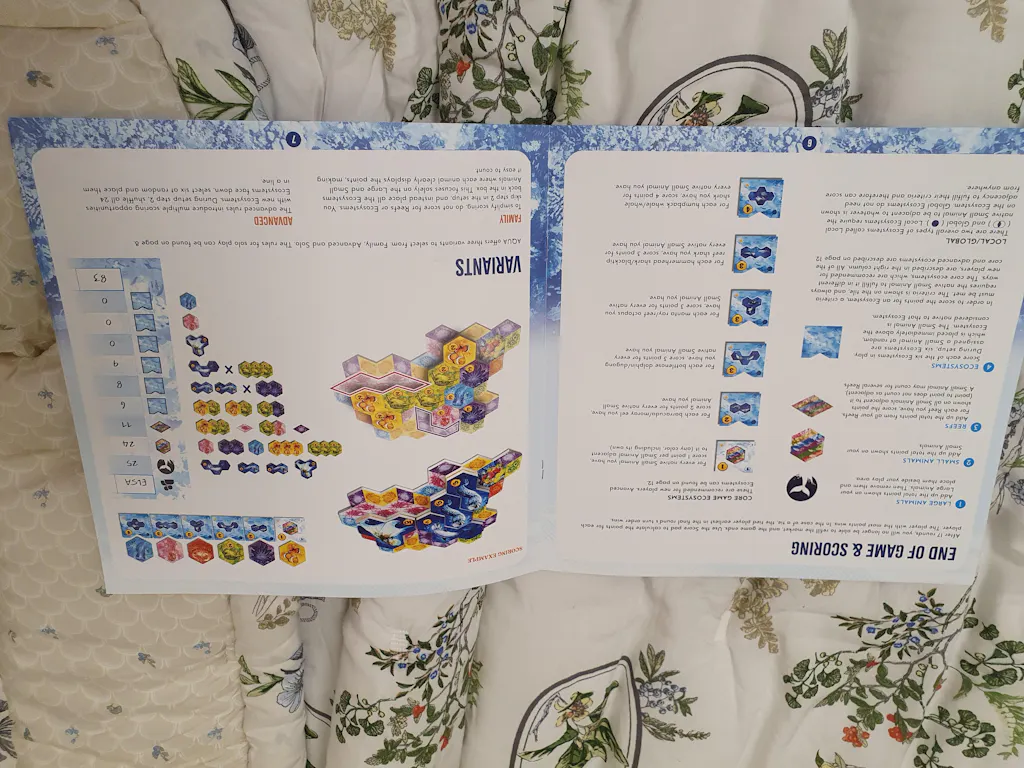 AQUA plays over 17 rounds. On your turn, you must take a new coral tile from the market and add it to your reef, then you may also attract animals to your ecosystem if you create the correct patterns of coral.