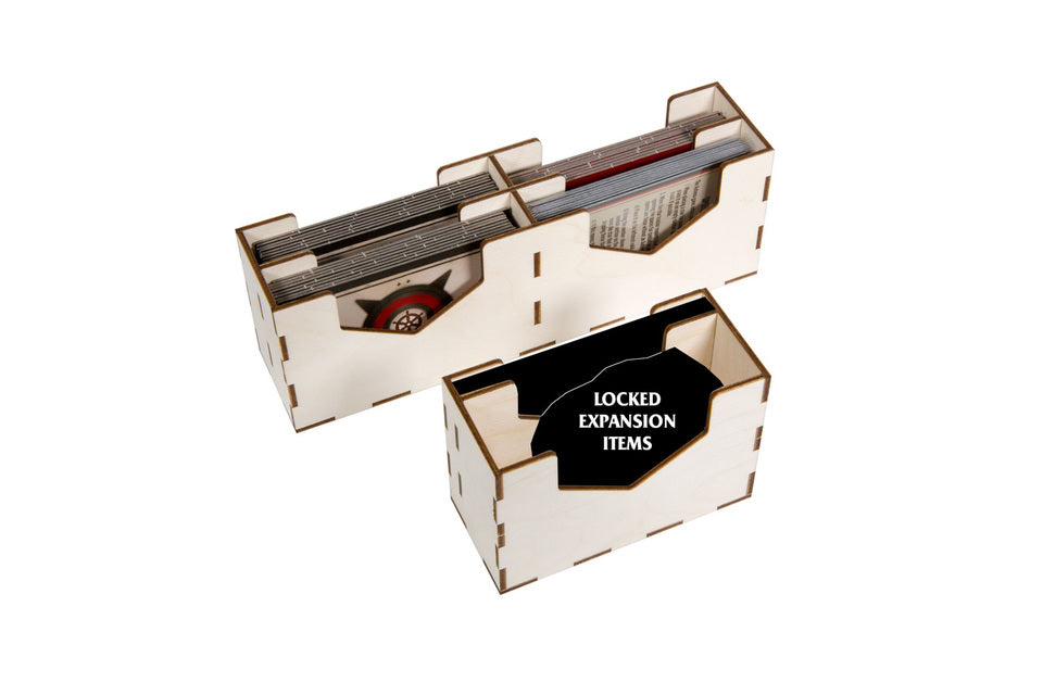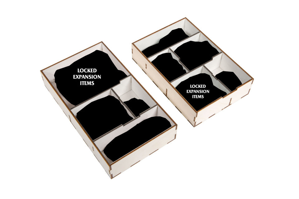 Complete your Scythe organization solution with our Scythe Legendary Organizer. When used in combination with the original The Broken Token Scythe Organizer, the Scythe Legendary box will now store and organize The Wind Gambit and The Rise of Fenris. 14 new removable trays are designed to store the Scythe core game plus all existing expansions and promos. Locked expansion elements are obscured in photo to avoid spoilage, but rest assured there are trays to accommodate all expansion elements once unlocked.
