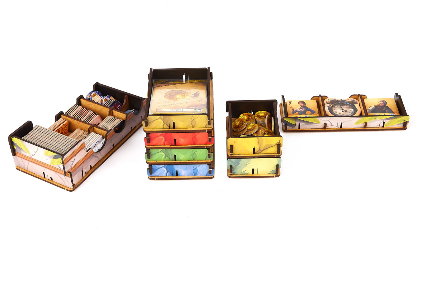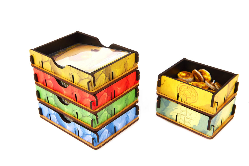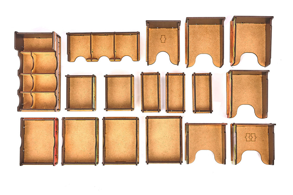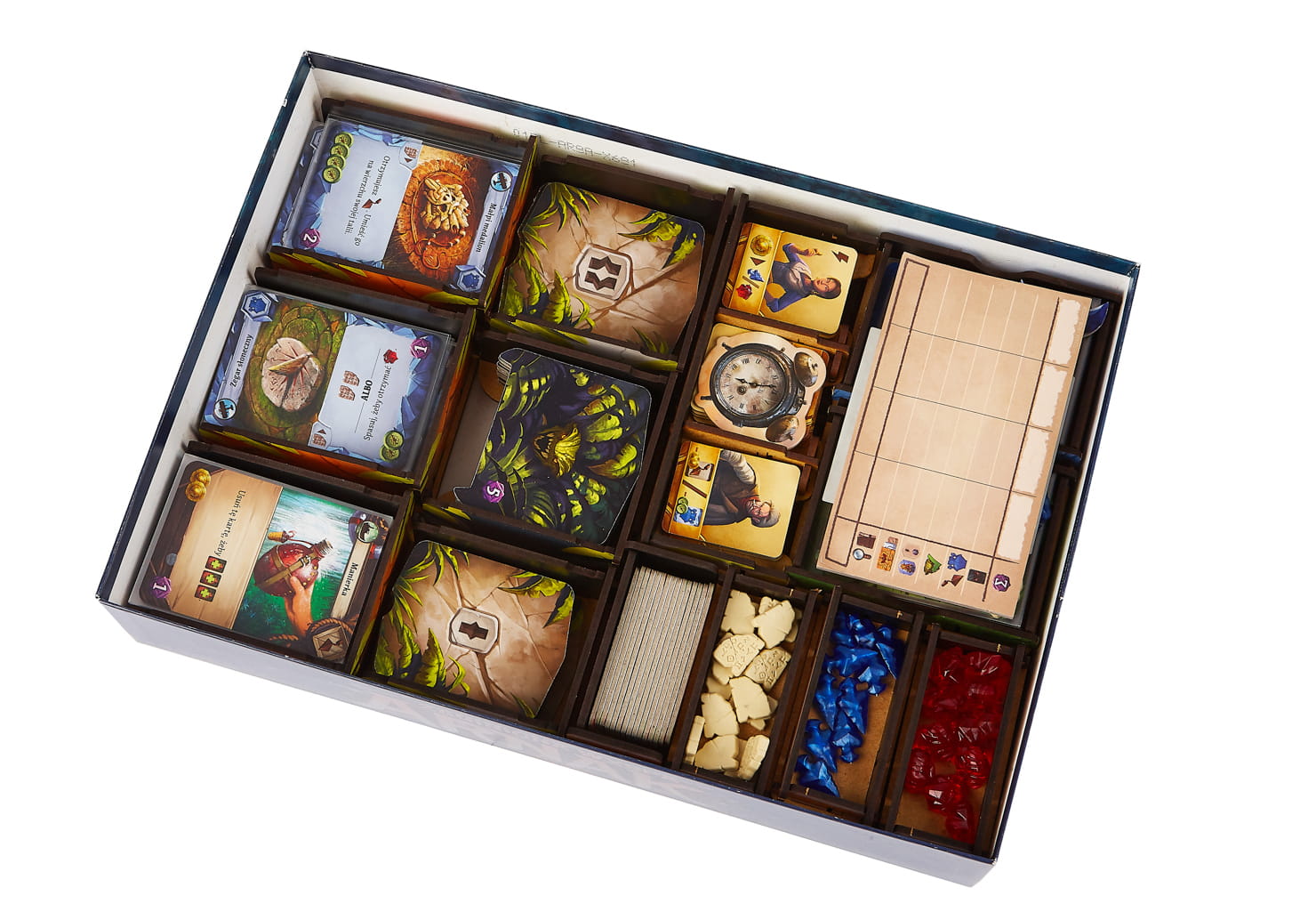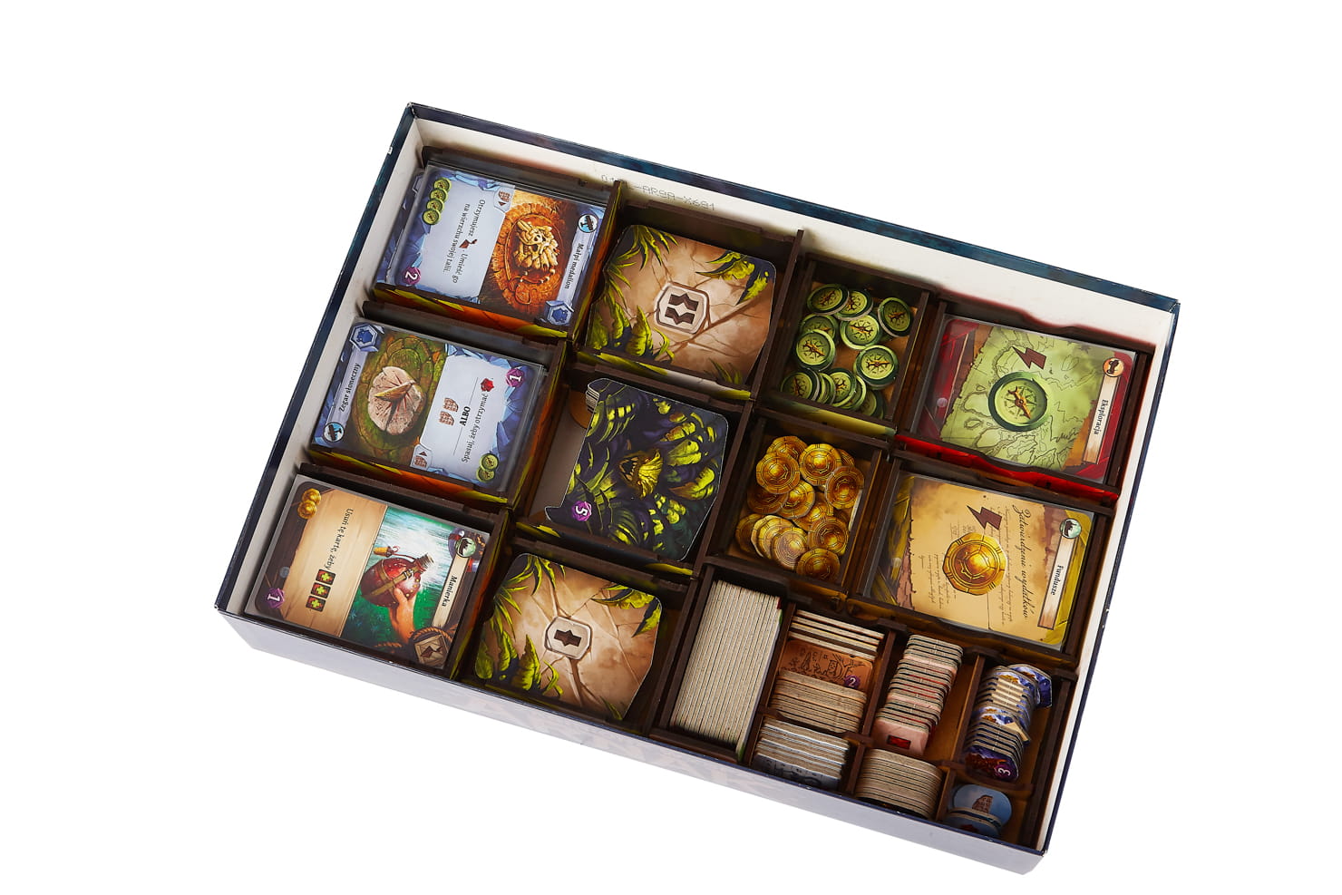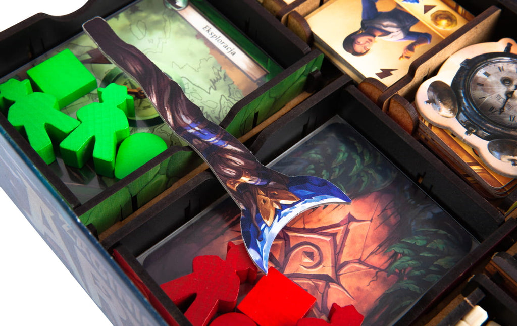 The insert is durable and made of high-quality HDF. To assemble it, there is no glue required. It allows you to hold all components inside the box. You can see the suggested components setup in the pictures. This offer concerns only insert. The game is not included.