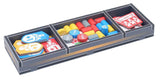 The full colour print really brings the trays to life, tying them in with the theme of the game and making it easier to see which components go where.