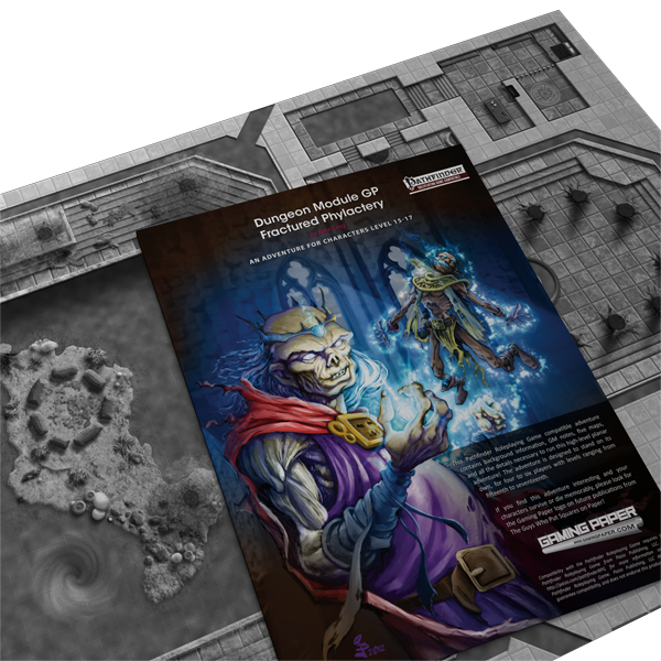 The Fractured Phylactery is an adventure for 15th–17th level characters. Written by John Ling, maps by Robert Lazzaretti, and with stunning artwork by Joel Biske this adventure is compatible with the Pathfinder Roleplaying Game.