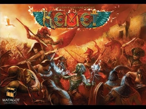 In Kemet, players each deploy the troops of an Egyptian tribe and use the mystical powers of the gods of ancient Egypt – along with their powerful armies – to score points in glorious battles or through invasion of rich territories. A game is typically played to 8 or 10 victory points, which may be accrued through winning attacks, controlling temples, controlling fully-developed pyramids, sacrificing to the gods, and wielding particular magical powers.
