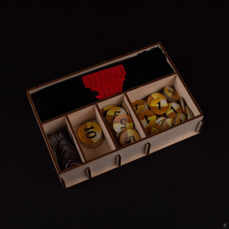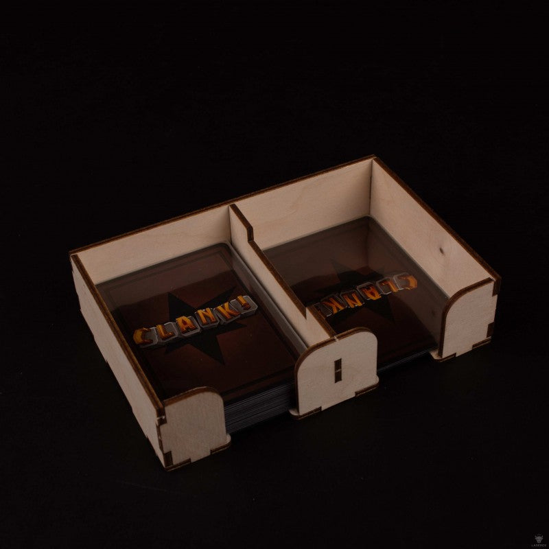 Burgle your way to adventure in this deck-building board game Clank!. Sneak into the angry dragon's mountain lair to steal the precious artifacts. Use our carefully designed organizer to have all your game components securely stored, so no burglar could steal any of your tokens.