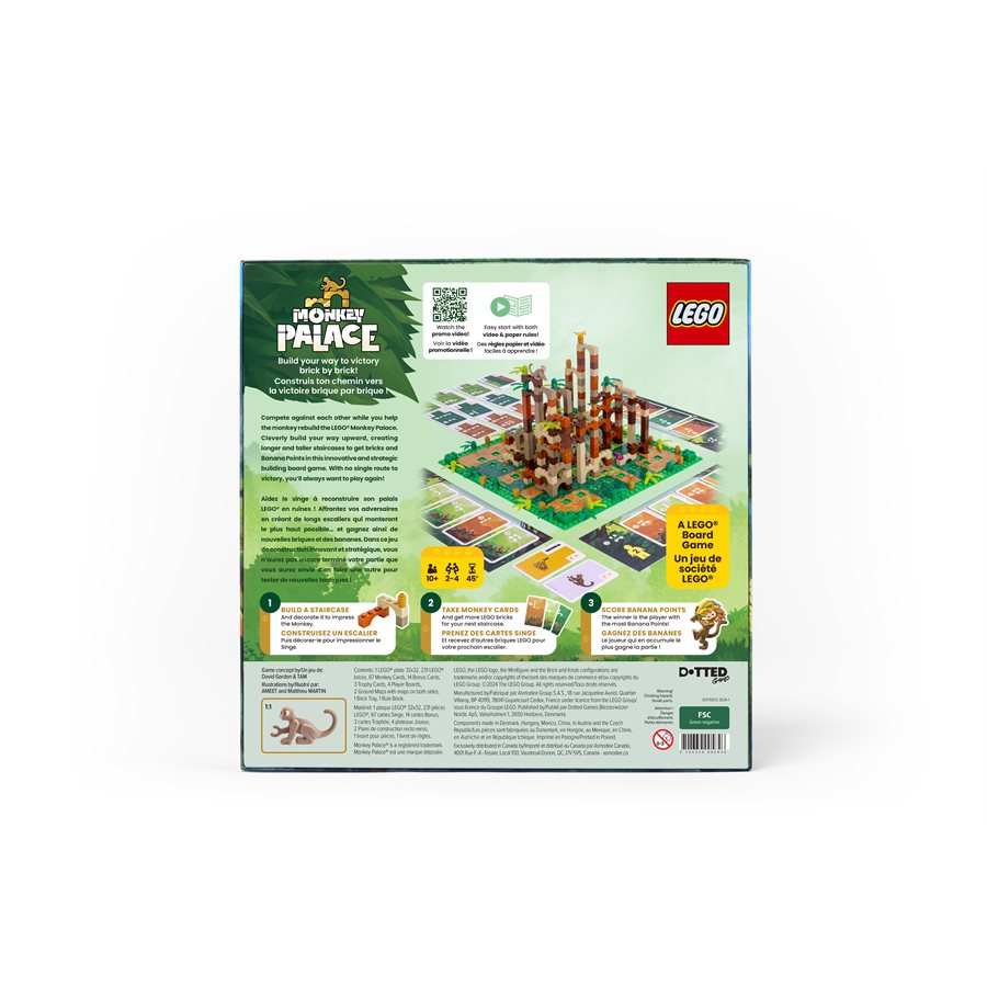 Players must strategically work together to construct the Monkey Palace while competing for the highest brick income and points, all under the watchful gaze of the Monkey. The palace gradually takes form thanks to a construction using LEGO elements, and each time the board game is played, the building experience and final construction are unique.