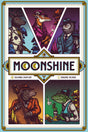 Moonshine is a dice-based engine-building game in which players play simultaneously. On each turn, each player exploits the dice results obtained by the active player for their own purposes, in order to enhance the appeal of their speakeasy. The aim of the game is to attract enough customers to reach 12 prestige points. When a player achieves this, the game ends and the player with the highest score wins.