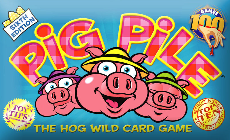 Pig Pile is an extremely light card (and punny) game. The cards have illustrations of pigs (naturally) and you can be "hog tied" or have a "hog wash".