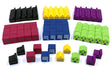 This Power Grid building upgrade kit contains 22 of each of the 6 player colors. Each color also has a unique shape and painted design, to aid color-impaired players (and look neat!)