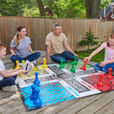 - PLAY INDOORS OR OUTSIDE: The colorful, 64”x64” vinyl gameboard makes for big fun in the house or as an outdoor game