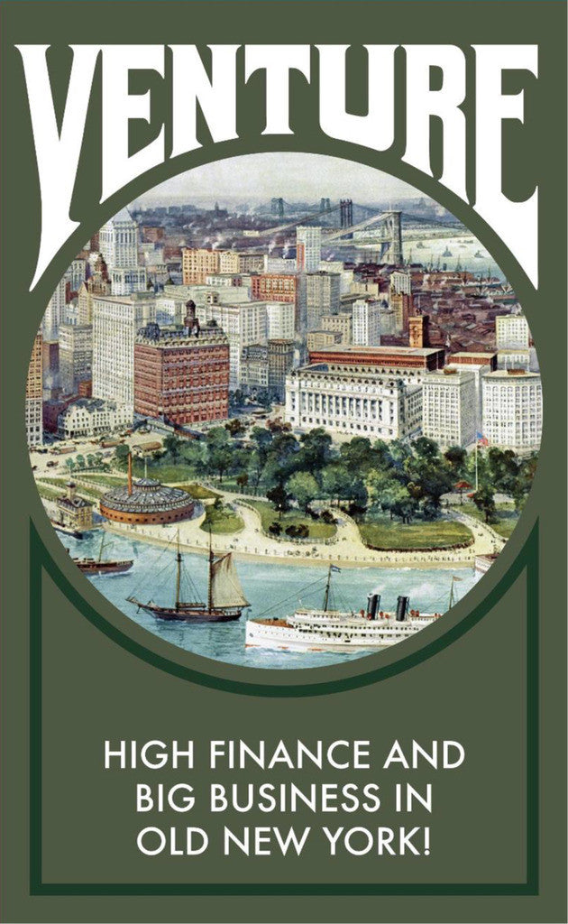 Card game in which players purchase companies using sets that have various monetary denominations (the resource cards). Turning in a set with matching symbols is worth more than the face value of the cards, so set collecting becomes a key strategy. Purchased companies (the corporation cards) are placed in front of the player according to a matching letter system. The top company of each stack is vulnerable to proxy take-overs by other players, so they usually attempt to order their holdings such that the most valuable ones are covered by less valuable companies. Scoring occurs whenever a player draws a profit card from the deck. The game ends when the corporation deck is exhausted.
