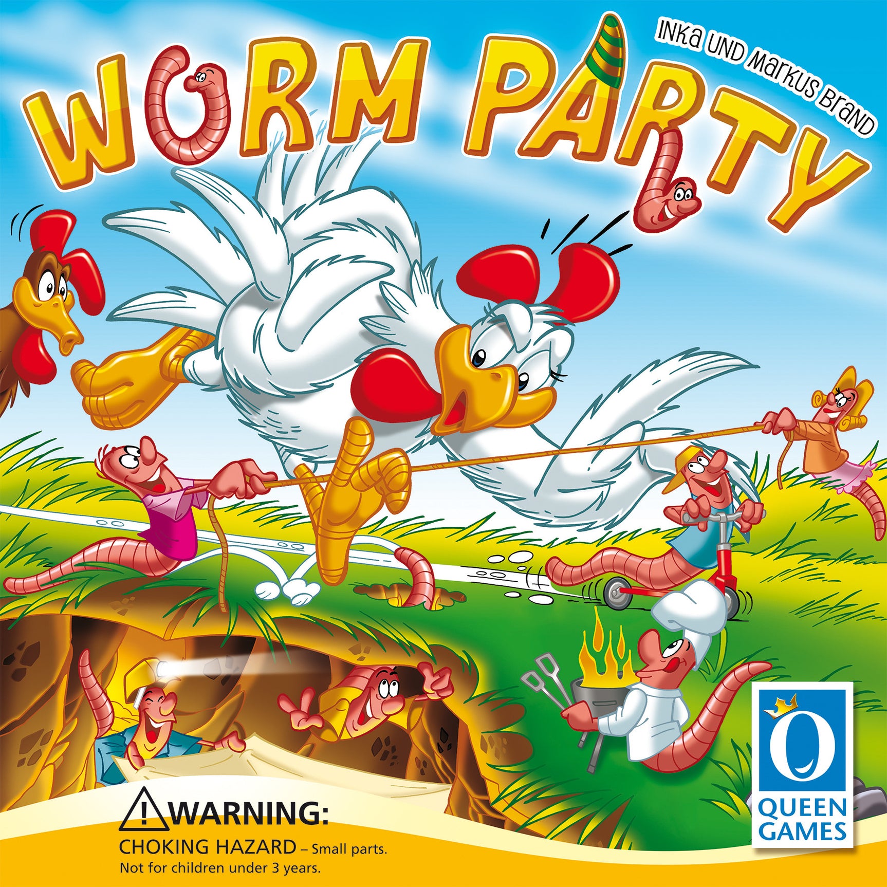 In Worm Party, players attempt to escape the nibbles of Charly the chicken by hiding their wormlike fingers below the proper mounds.